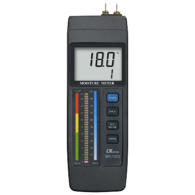 Lutron MS-7003可以廣泛地測量木材及混凝土的水份濕度,清楚的紅色LED 燈條及液晶數位雙顯示,判讀容易。具備實用的讀值鎖定及最大值、最小值紀錄。另可選購外接延伸測棒MP-31,可適用狹縫或其它特殊狀況。